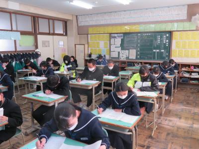 1年間のまとめのテストです。集中して頑張る様子がうかがえました。