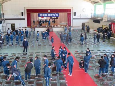 2021年3月11日 20時29分明日の卒業式に向けて、1,2年生で準備を行いました。