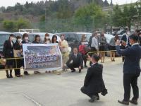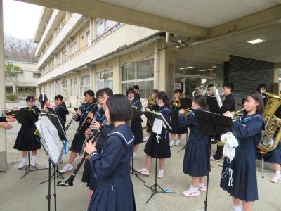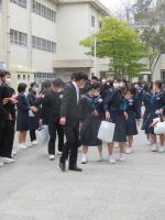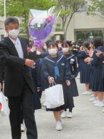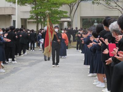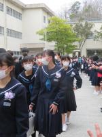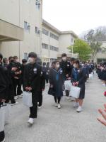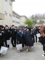在校生と保護者、先生方で卒業生をお見送りしました。