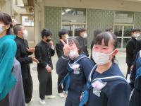 学活を行っている間に在校生が登校しました。卒業生の見送りを行うためです。