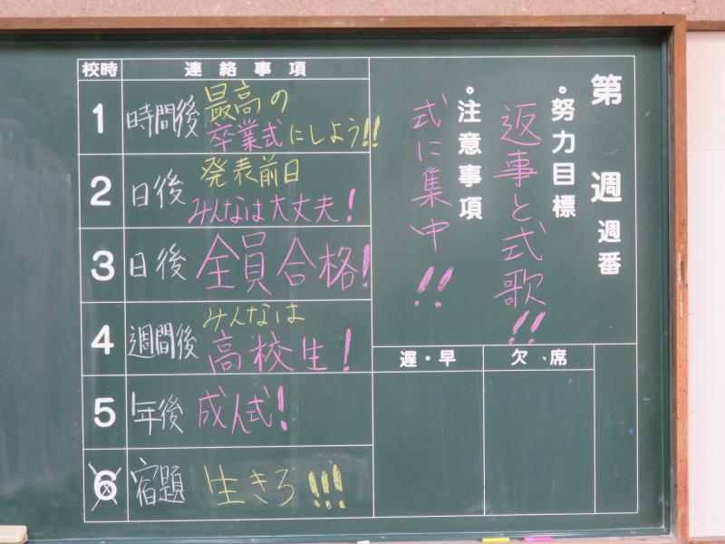 2021年3月12日 15時33分卒業式が無事終了し、各学級で最後の学活です。