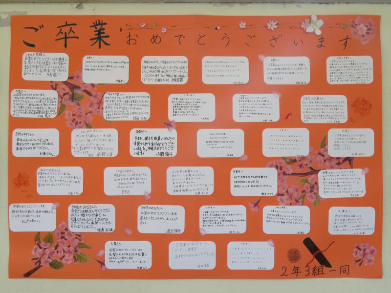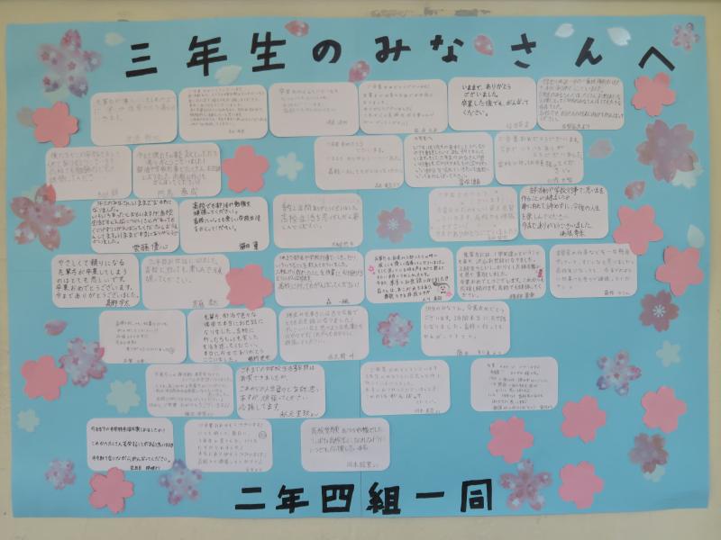 卒業にあたり、2年生の皆さんがメッセージを贈りました。