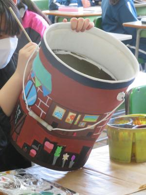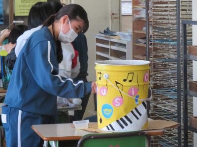 2021年3月21日 11時48分美術部の皆さんが、特別教室に設置してあるゴミ箱に絵を描きました。