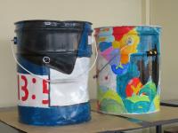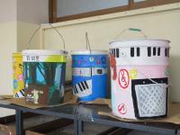 美術部の皆さんが、特別教室に設置してあるゴミ箱に絵を描きました。