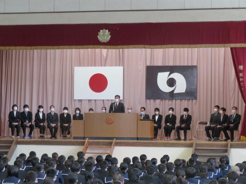 はじめに着任式が行われました。4月に着任された先生方を生徒の皆さん紹介しました。