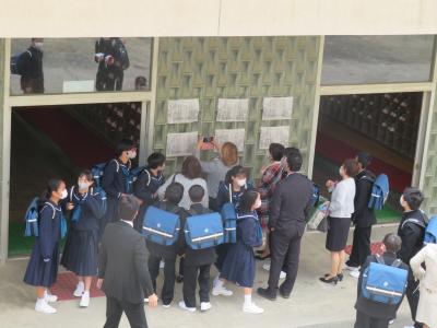 昇降口でクラス発表