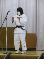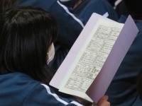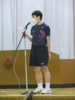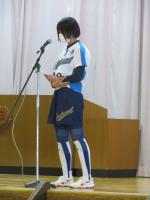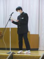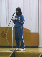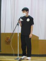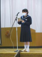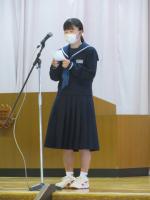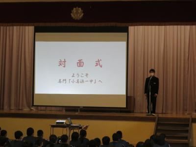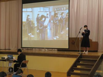 まず、生徒会役員の皆さんから、小名浜一中の生活について説明がありました。