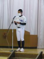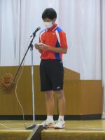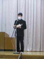 コロナ禍を考慮して、上級生は生徒会役員と各部活動の部長のみの出席で新入生を迎えました。