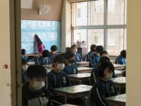 この後、教室に戻り、放送で避難訓練の反省を行いました。