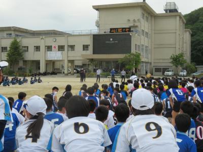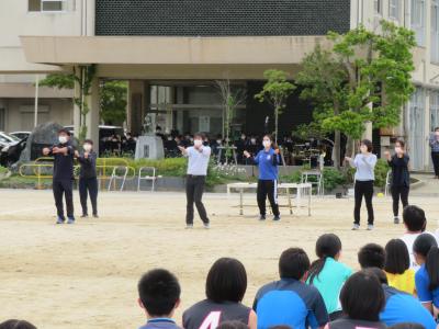 2021年5月20日 18時32分5月20日(木)に行われた中体連出陣式、各部からの決意表明の後、全校でエールを送りました。