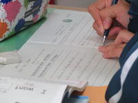 最初は戸惑っていた生徒も、友達と情報交換をしたり、ヒントを確認したりして、文章をつくることができました。
