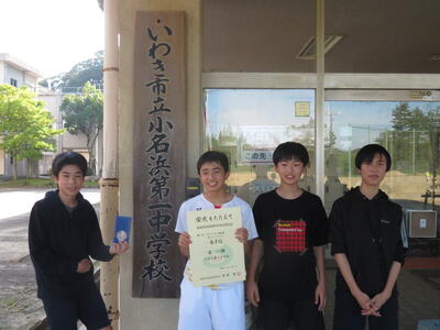 小名浜一中からは個人戦、男子シングルスでベスト4に残り、準決勝の試合に臨みました。