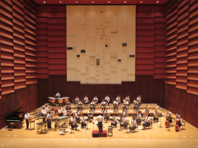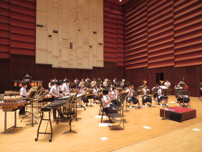 2021年7月24日 08時35分月末に開催される福島県吹奏楽コンクールに出場する小名浜一中吹奏楽部、7月22日(木)に会場となるアリオスでステージ練習を行いました。