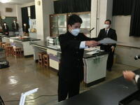 式後、「防犯講話」が行われ、命を守る行動として「しっかりと放送を聴くこと」の重要性について、担当教師より話がありました。