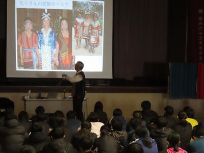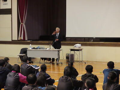 2023年1月29日 14時12分1月25日(水) 2学年において、「こころの教育講演会」が行われました。講師として宍戸仙助先生に来校いただきました。宍戸先生は、本県の小学校教員、校長として勤務し退職後、NPO法人「シーエスアールスクエア」理事長として、主に東南アジアの子どもたちの学習環境の改善を目的に精力的に活動なさっています。