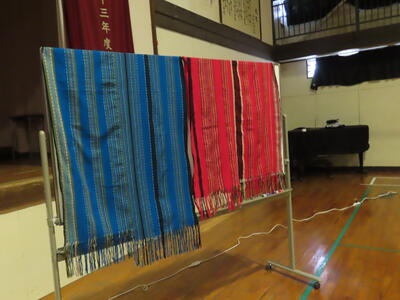 現地の子どもたちは、学校にいくことができず、労働者(家庭を支える働き手)として日々、生活しています。こちらの写真は、小学生が約4ヶ月かけて織った布です。日本円にして1枚80円でしか売られていないとのことでした。