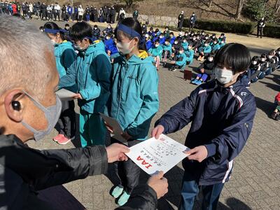 特設駅伝部のみなさん。これまで、寒い中での練習お疲れ様でした。今大会の経験をバネに、各競技にも生かしてほしいと思います。そして、9月の中体連駅伝大会で、男女県大会出場を目指して、頑張っていきましょう。