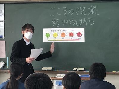 2023年2月11日 14時10分2月6日(月) 1年生で「こころの授業 ~怒りの気持ち~」について、講師を招いて授業が行われました。私たちは生活のさまざまな場面で、怒りの感情をもつことがありますが、この「怒り」は人によって感じ方はそれぞれであるということを学びました。