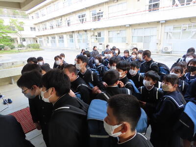 校長先生からの紹介の後に、お一人ずつご挨拶をいただきました。ようこそ、小名浜第一中学校へ!
