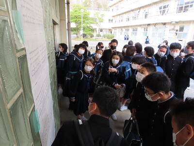 朝の昇降口には、生徒の群がる様子があり、あちらこちらで声があがっていました。そうです。学級と学級担任の発表です。