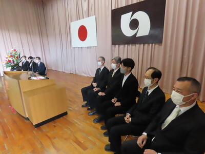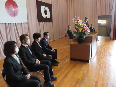 その後、着任式が行われ、本年度本校に着任した先生方の紹介がありました。(着任した先生方については、プリント配付しました。コチラ→R5 着任者お知らせ.pdf)