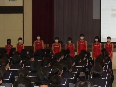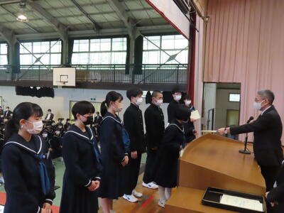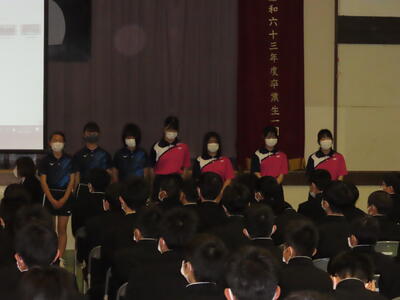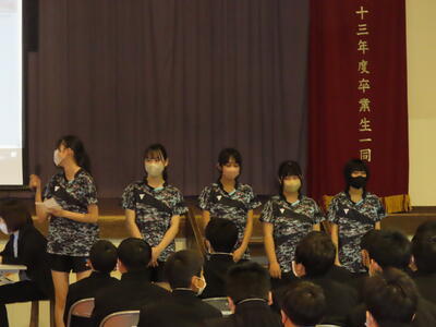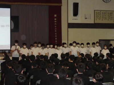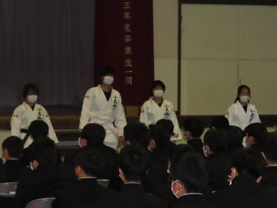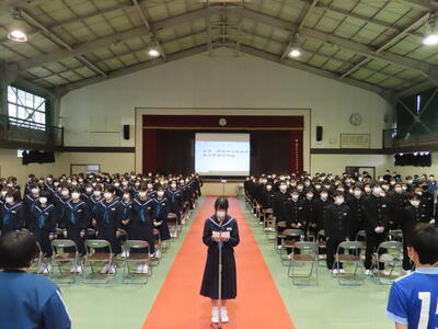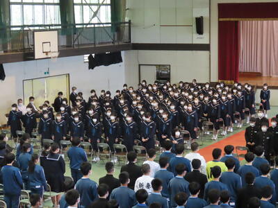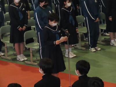 最後に、新入生代表生徒からお礼の言葉が述べられました。先輩方を目の前にして緊張する中での発表でしたが、大変立派にあいさつすることができました。