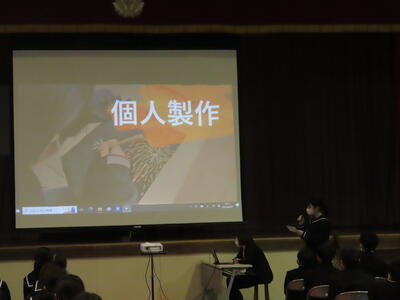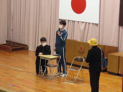 第1部では、委員会の紹介を劇中にて行いました。春休み中、生徒会役員を中心に発表練習を重ねてきました。