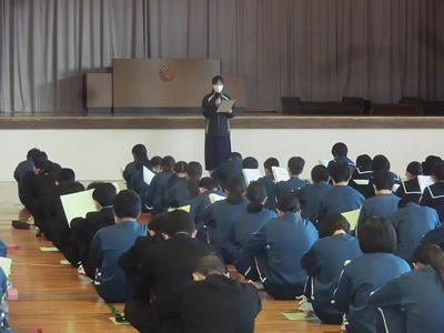 2020年4月16日 14時37分16日(木)の総合学習の時間、3年生は学年集会を行いました。内容は、修学旅行についてです。