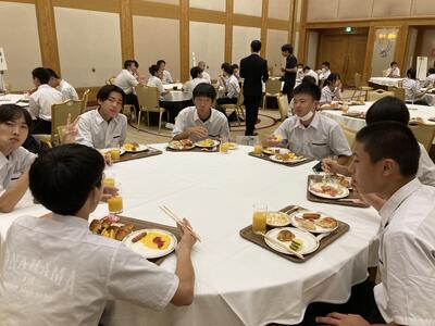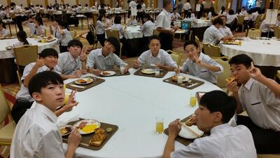 校長先生からは、「周囲の人に対して思いやりのある行動があちらこちらに見られる3日間でした」との言葉がありました。初日の夜、ホテルに向かうバスの中、ふと生徒から「校長先生どうぞ」と手渡された缶コーヒー。その生徒にとっては何気ない行動だったのかもしれませんが、校長先生にとっては、とっても温かい缶コーヒーとなり、未だに口にすることができないようです。