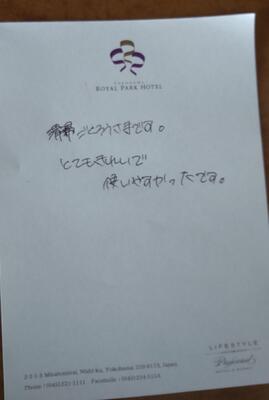 昨晩の宿泊先は、横浜ランドマークタワー内にある「横浜ロイヤルパークホテル」。54階から58階のフロアに宿泊しました。