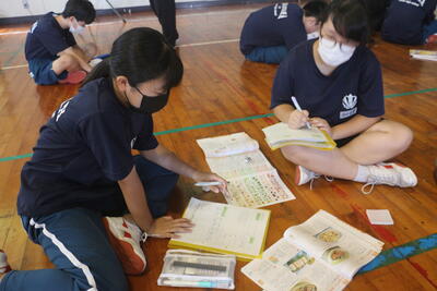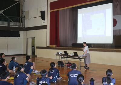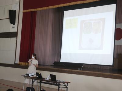 9月7日(木) 2学年の総合的な学習の時間に、小名浜給食センターの栄養教諭を講師に招いて、本校家庭科教諭とともに、食に関する授業「バランスの良い食事」を行いました。