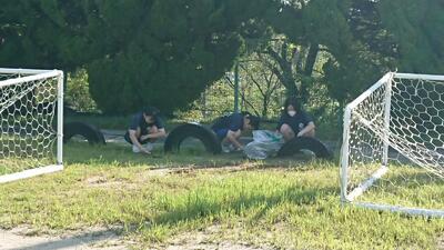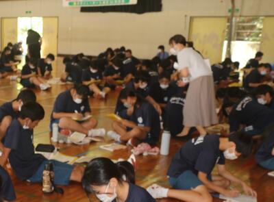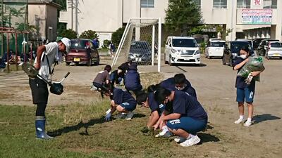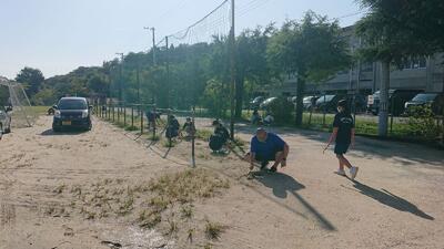 おととい修学旅行から帰ってきたばかりの3年生や、部活動前の1・2年生の参加も見られ、短時間ではありましたが、みんなで思いっきり汗を流しました。