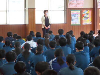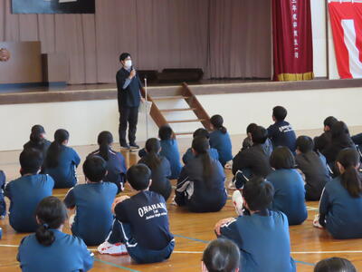 本日、6校時に1・2学年で集会が開かれました。各学年とも1年間を振り返りながら、成長したことや今後も継続して取り組んでほしいことなど、新学期に向けて先生方からお話をいただきました。