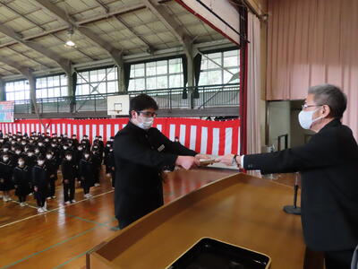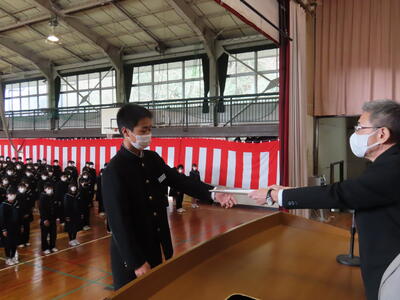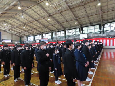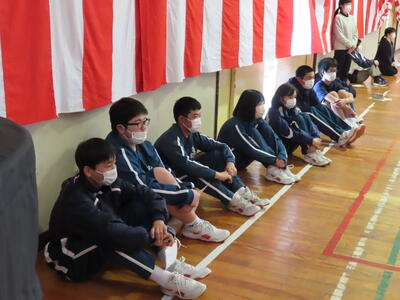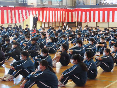 式辞の中で、校長先生からこの1年の頑張りを賞賛するお言葉をいただき、生徒たちからは、新年度に向けてさらに励もうという表情が見られました。
