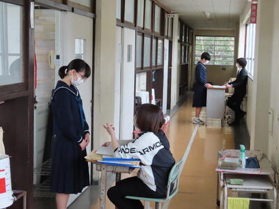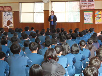 校長先生からの紹介の後に、お一人ずつご挨拶をいただきました。ようこそ、小名浜第一中学校へ!