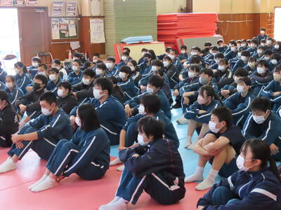 3月23日(木) 令和4年度修了式が行われました。1・2年生全員が体育館に入場しての実施となり、厳かな雰囲気の中での式となりました。