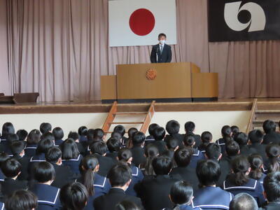 今年1年、うれしかったこと、楽しかったこと、悔しかったこと、悲しかったことなどさまざまなことを経験したと思います。その経験の中で、まちがいなく生徒たちは成長してきました。この経験をもとに、新学期からのさらなる飛躍を先生方は期待しています。