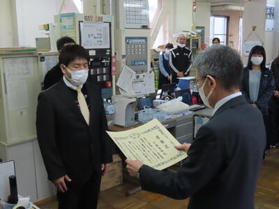 24日に辞令が交付され、退職される2名の先生方には、県より感謝状が贈呈されました。