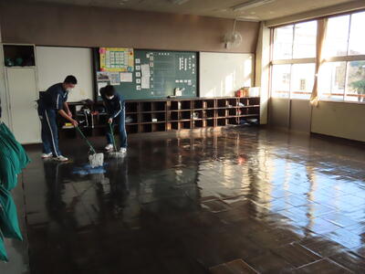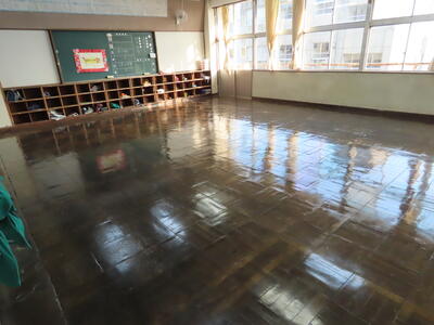 4月から使用する現2年生のために、どの教室も丁寧にワックスがけがされました。