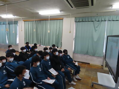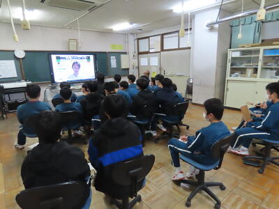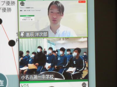 7日(火)の放課後 サッカー部は、グランドではなくコンピュータ室に集まり、オンラインでいわき市出身のJリーガー「高萩洋次郎」選手と交流しました。