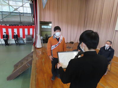 退職する二人の先生に、手作りの卒業証書が授与されました。