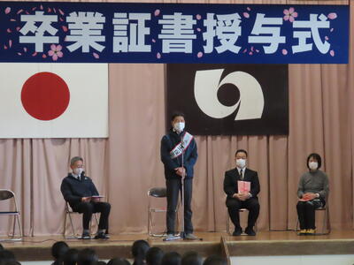 3年生のみなさん。卒業おめでとうございます。小名浜一中での学びをこれからの糧として、くじけそうになっても、立ち上がり、前進してください。困ったときは、いつでも力になります。ここで過ごした仲間や先生方を頼ってください。