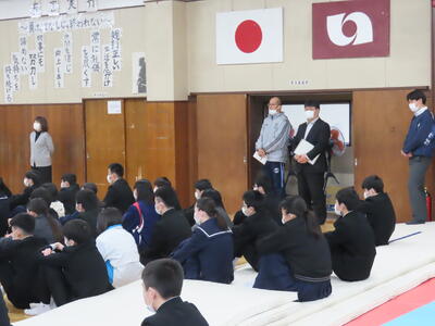 高萩選手の中学校時代の様子やサッカー選手としての華やかなエピソードだけでなく多くの苦難についても話を聞くことができ、生徒たちは多くのことを学ぶ機会になったようです。