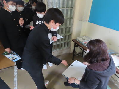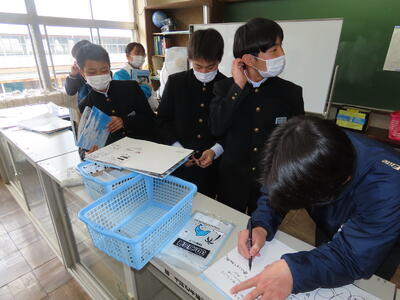 その後、教室で学級活動を行いアルバムを配付しました。「あるある」の光景をお送りします。アルバムのメッセージ欄に友人や先生方からメッセージをもらう様子です。