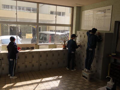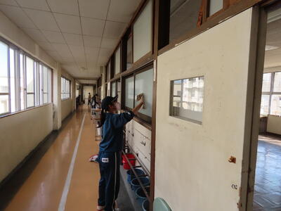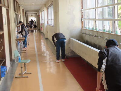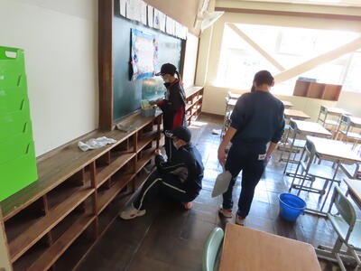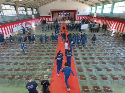 10日(金)の午後には、在校生で校舎内の清掃と体育館の式場作成を念入りに行いました。