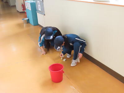 ワックスがけは、片付けまで行って完了となります。まだまだ冷たい水ですが、きっちりと使用したモップは手洗いです。さすが、3年生。