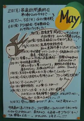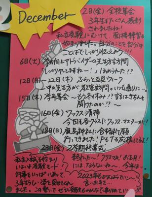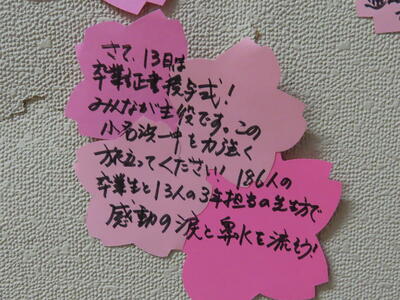 卒業生のフロアには、学年主任の先生が作成したメッセージが掲示されていました。