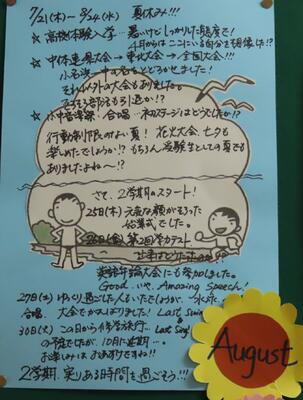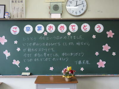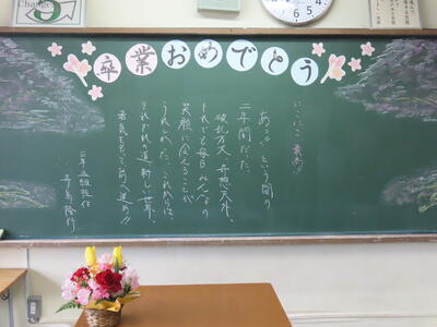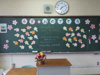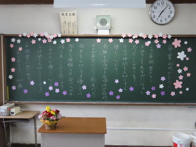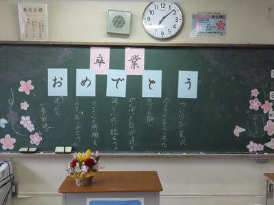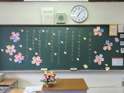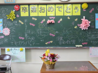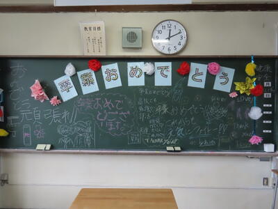 教室には、担任の先生から思い思いのメッセージが記されていました。