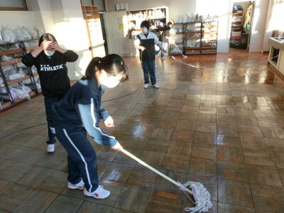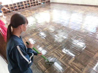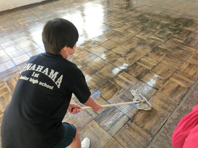 美術室は、美術部員が掃除をしながら同時進行でワックスをかけました。多くの荷物がありましたが、清掃担当の2年生が協力して荷物をすべて出してくれました。