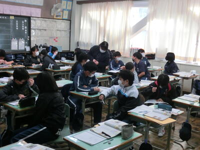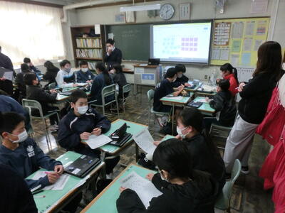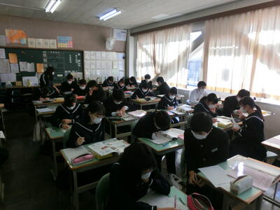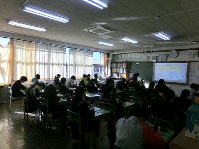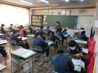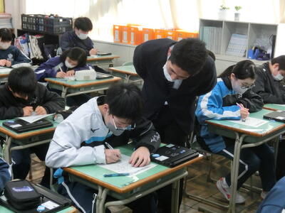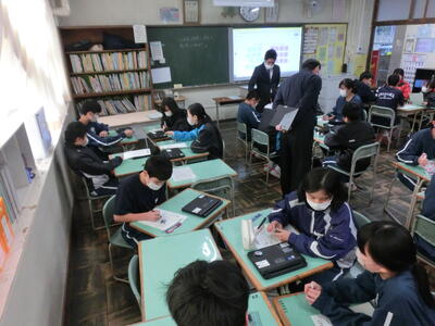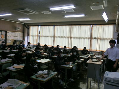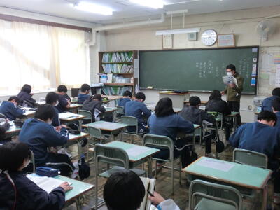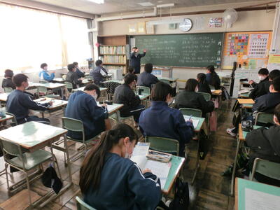 今週から「互見授業ウィーク」がスタートしました。互見授業とは、先生方が互いの授業を参観し、それぞれの授業の良さや改善点などについて意見交換をし、授業力を高めることを目的として行うものです。先生方の授業力(指導力)が高まることで、生徒たちの学力の向上につなげることを意識して取り組んでいます。